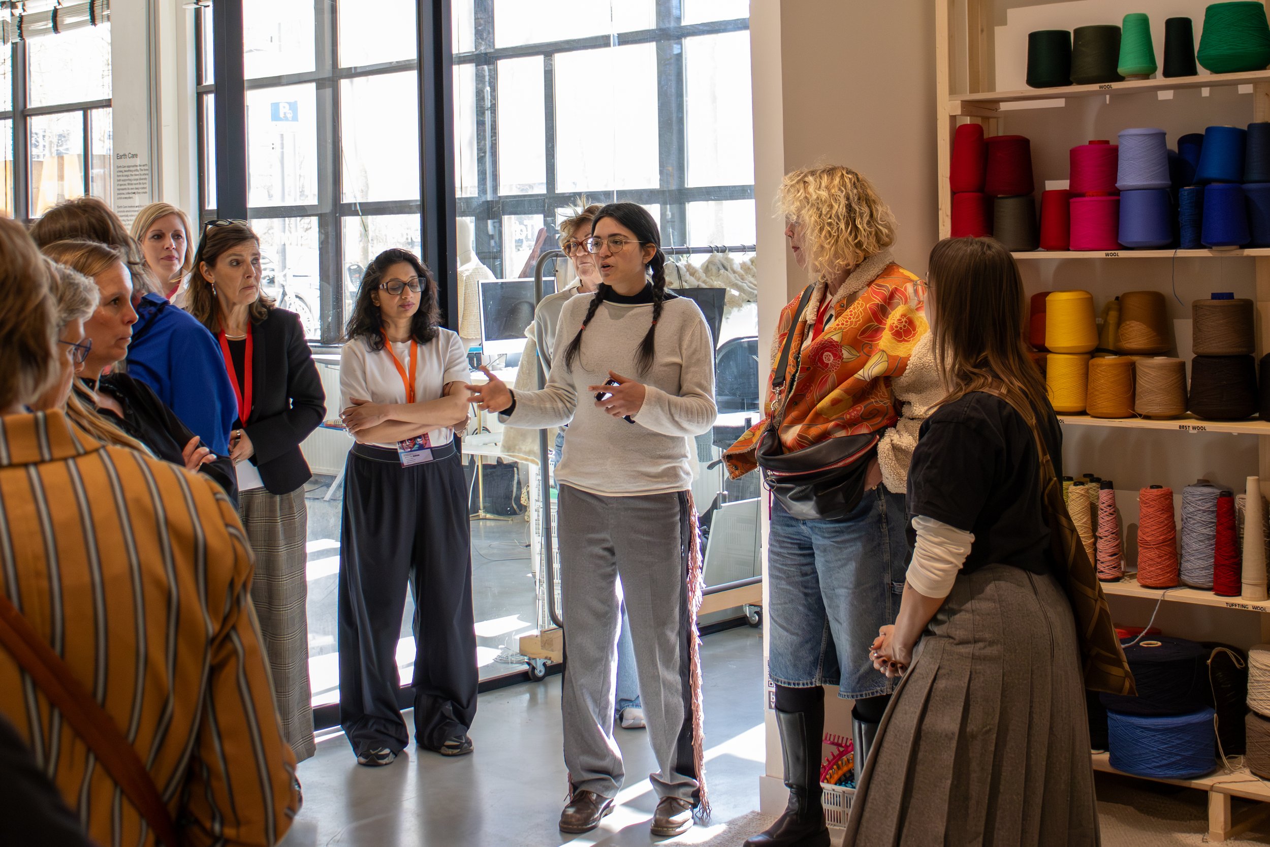 Also learning from regenerative fashion models were the MBO educators from the Mode Tweedaasge 2026 program. The group came by on the 4th of March and learn about NOOF’s journey as a talent platform and makers space, and had a fun day of learning about how regenerative design can guide fashion innovations. The goal was to teach educators how the industry is innovating so this knowledge can be passed onto the students. In this way, regenerative thinking is carried forward, becoming part of how future designers understand and engage with the fashion system.